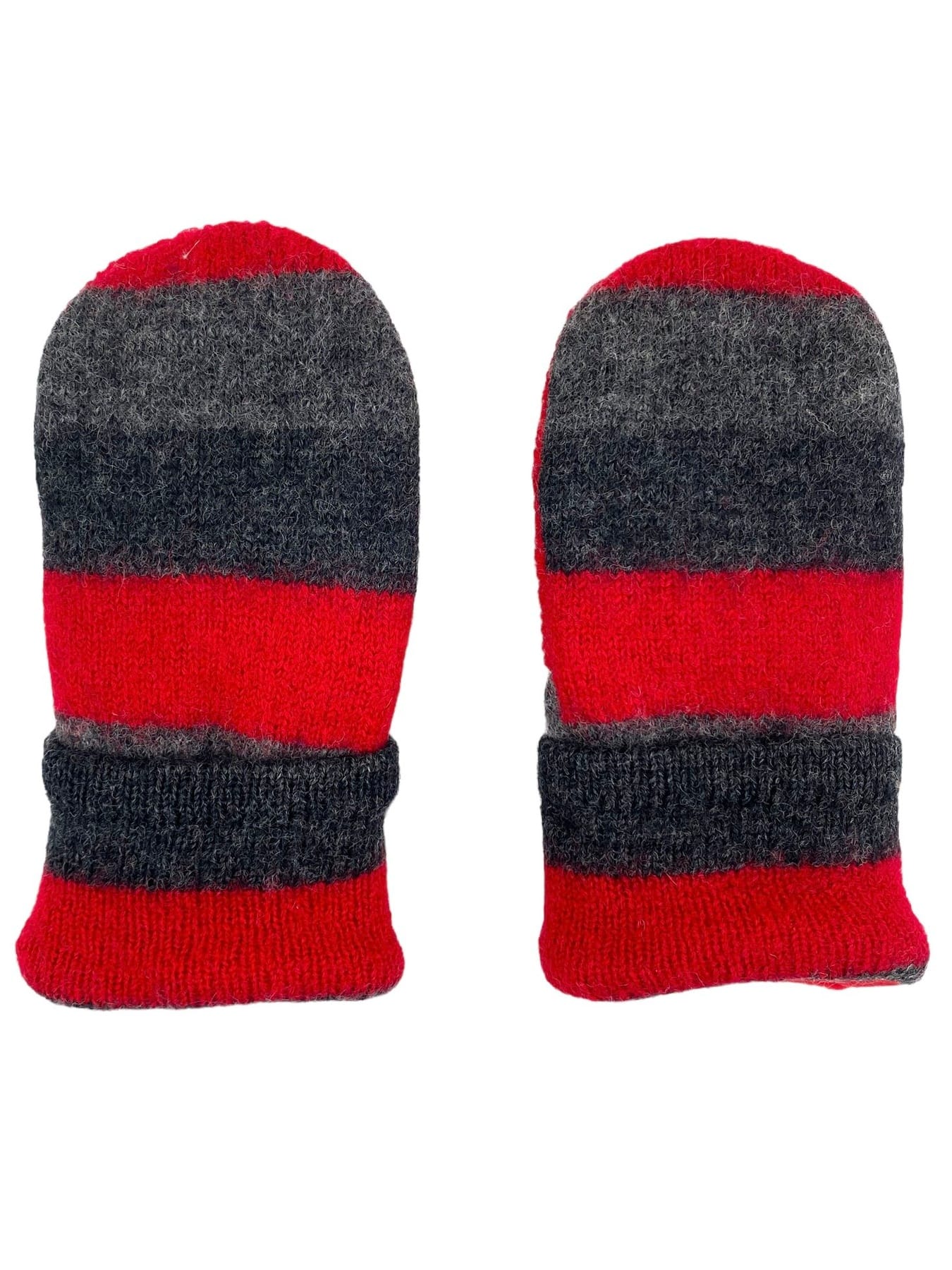 Kids Mittens — Black / Gray / Red Stripes (4-6 yr)